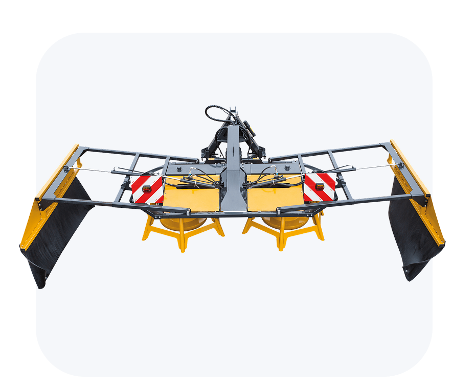 The pivot point positioned close to the three-point attachment allows a wide lateral offset and smooth movement away from the silo wall, reducing the risk of collisions and material damage. A dual-cylinder pivoting system ensures stable operation, while a locking block prevents unintended movement and increases safety during both work and transport.
