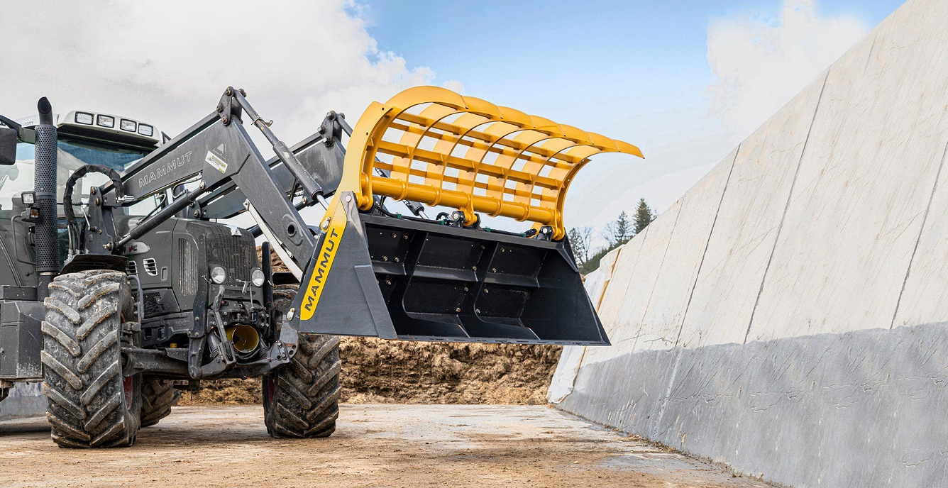 Thanks to its wide opening angle, the bucket is also suitable for handling materials such as straw and bulk feed. The grapple attachment additionally supports convenient loading and handling during various farm operations.